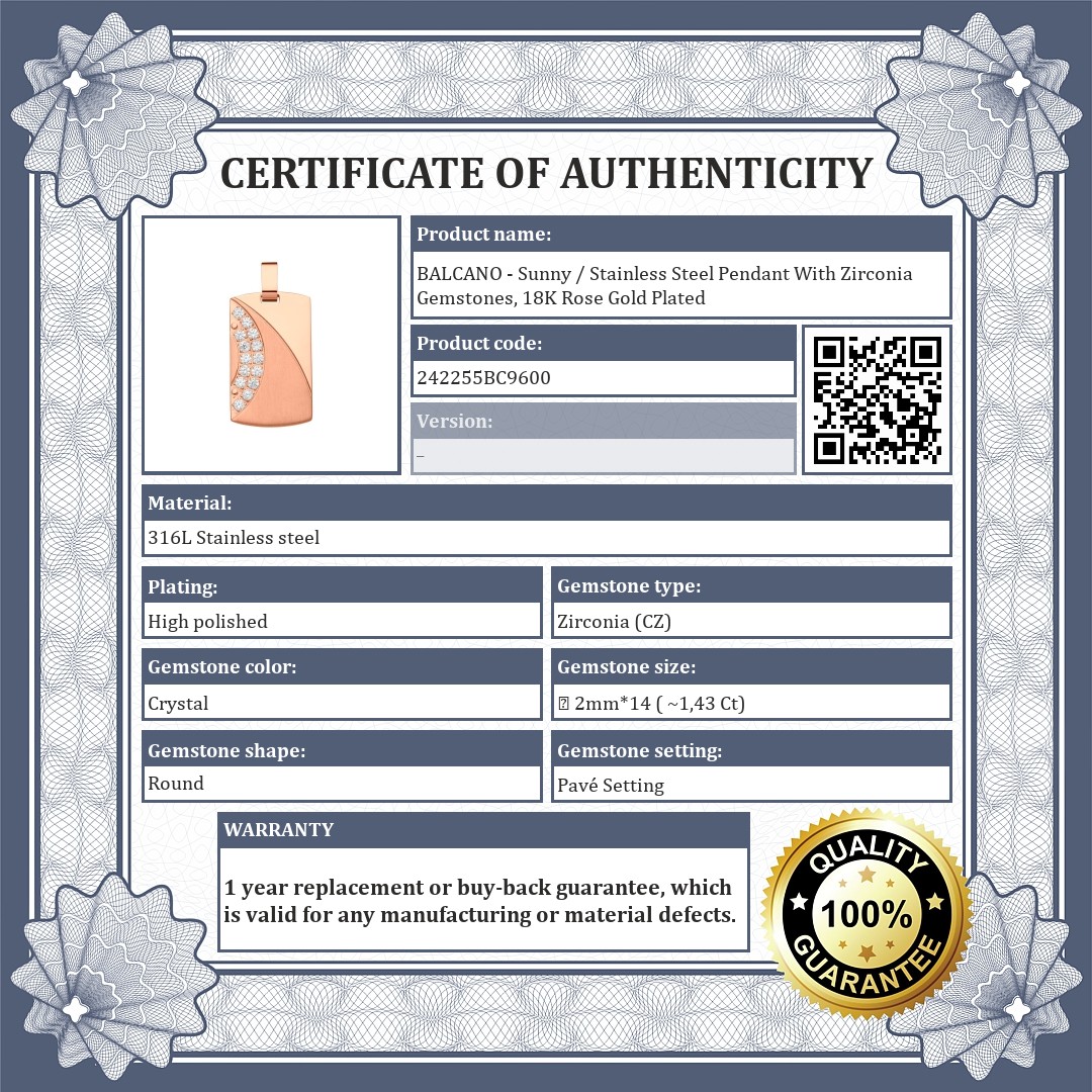 BALCANO - Sunny / Stainless Steel Pendant With Zirconia Gemstones, 18K Rose Gold Plated