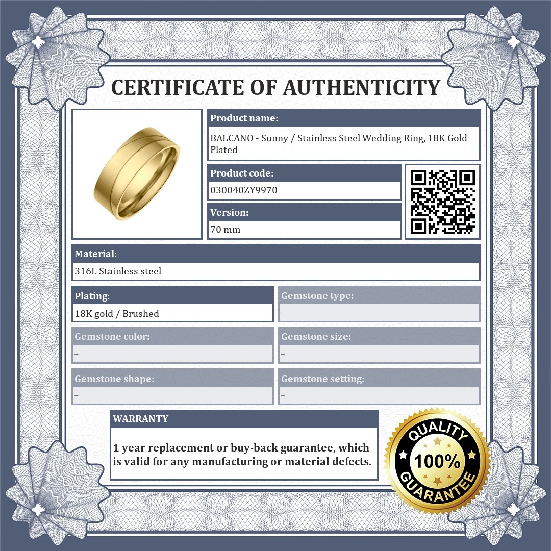 BALCANO - Sunny / Stainless Steel Wedding Ring, 18K Gold Plated