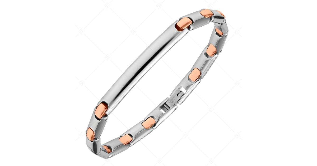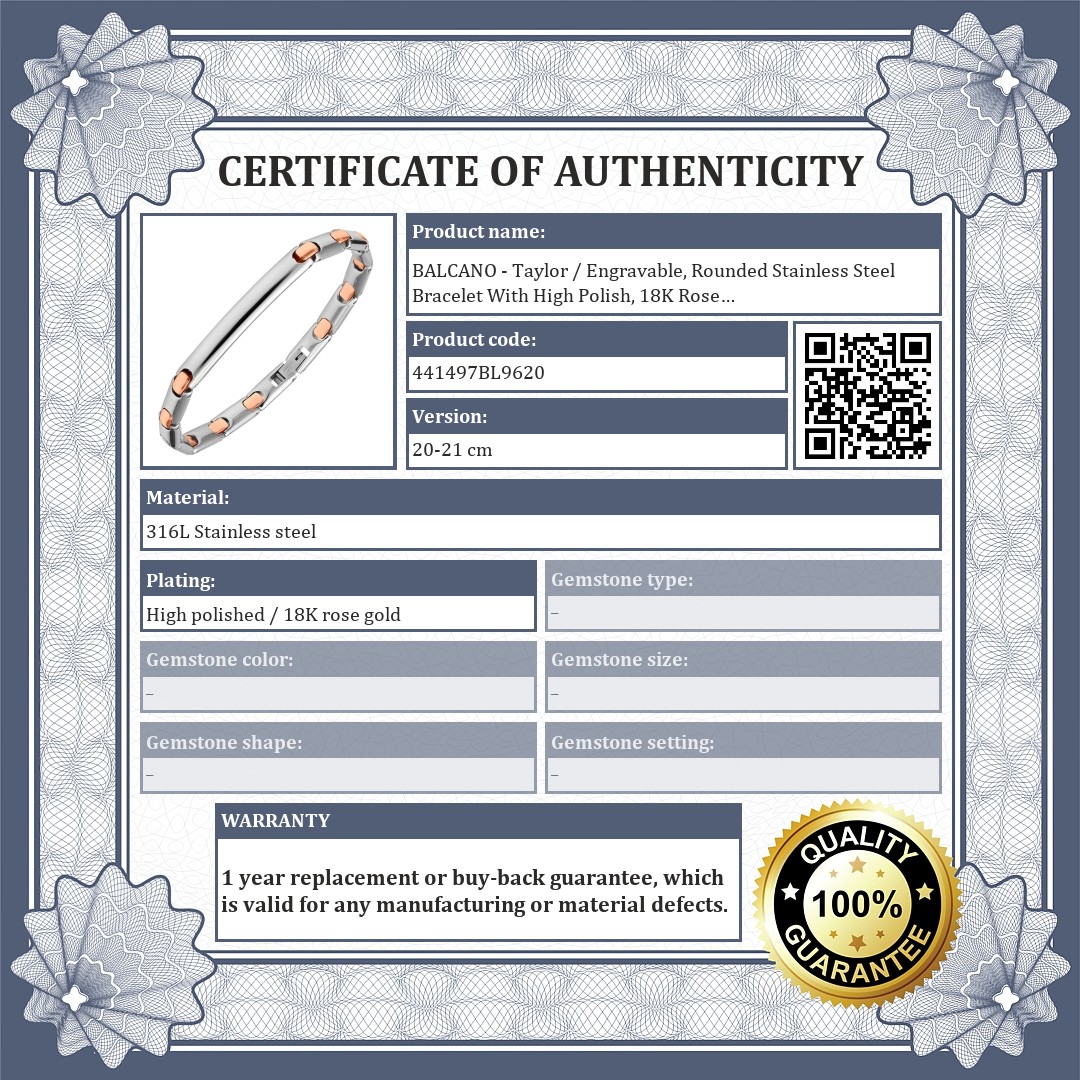 BALCANO - Taylor / Engravable, Rounded Stainless Steel Bracelet With High Polish, 18K Rose Gold Plated