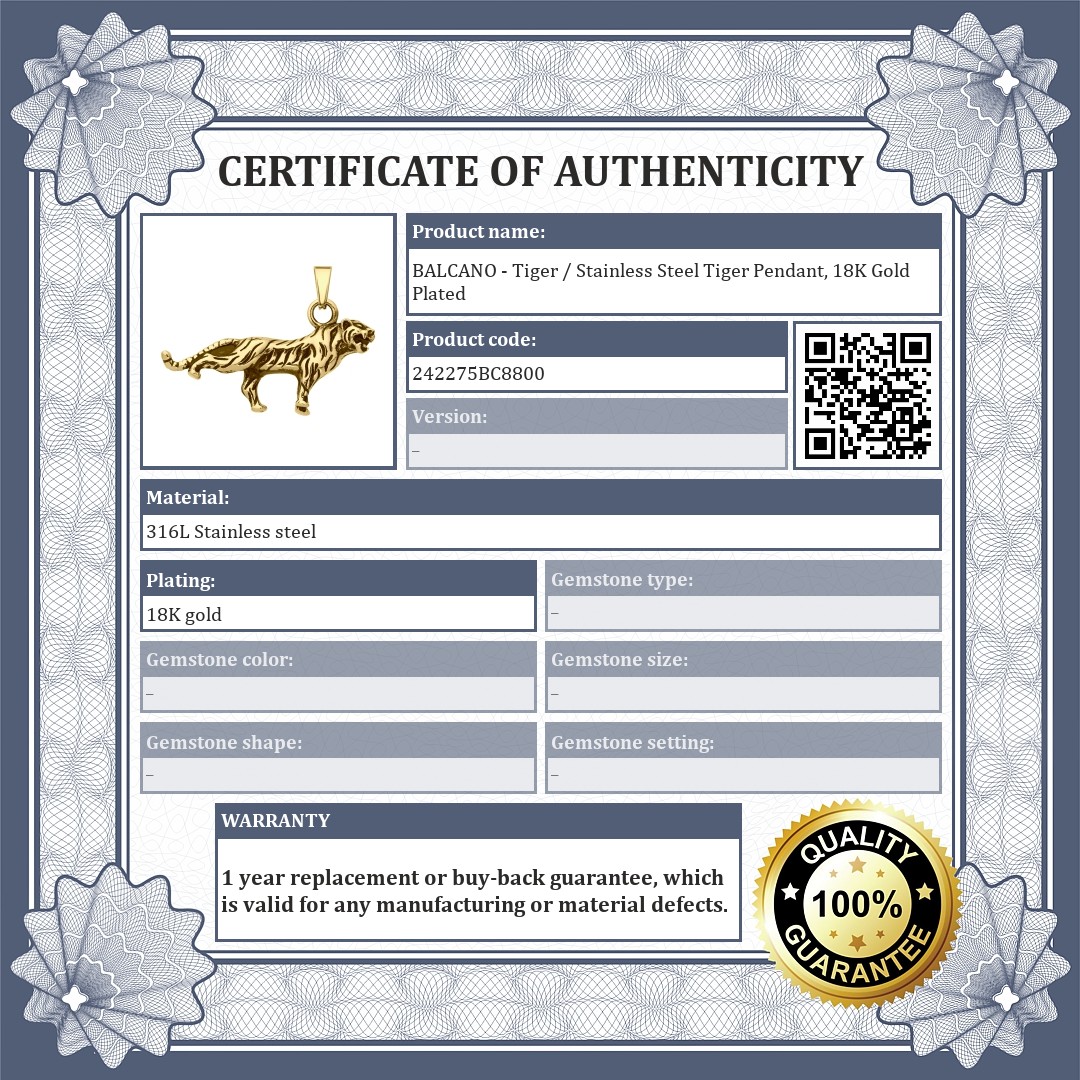 BALCANO - Tiger / Stainless Steel Tiger Pendant, 18K Gold Plated