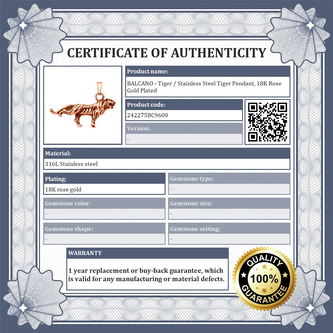 BALCANO - Tiger / Stainless Steel Tiger Pendant, 18K Rose Gold Plated