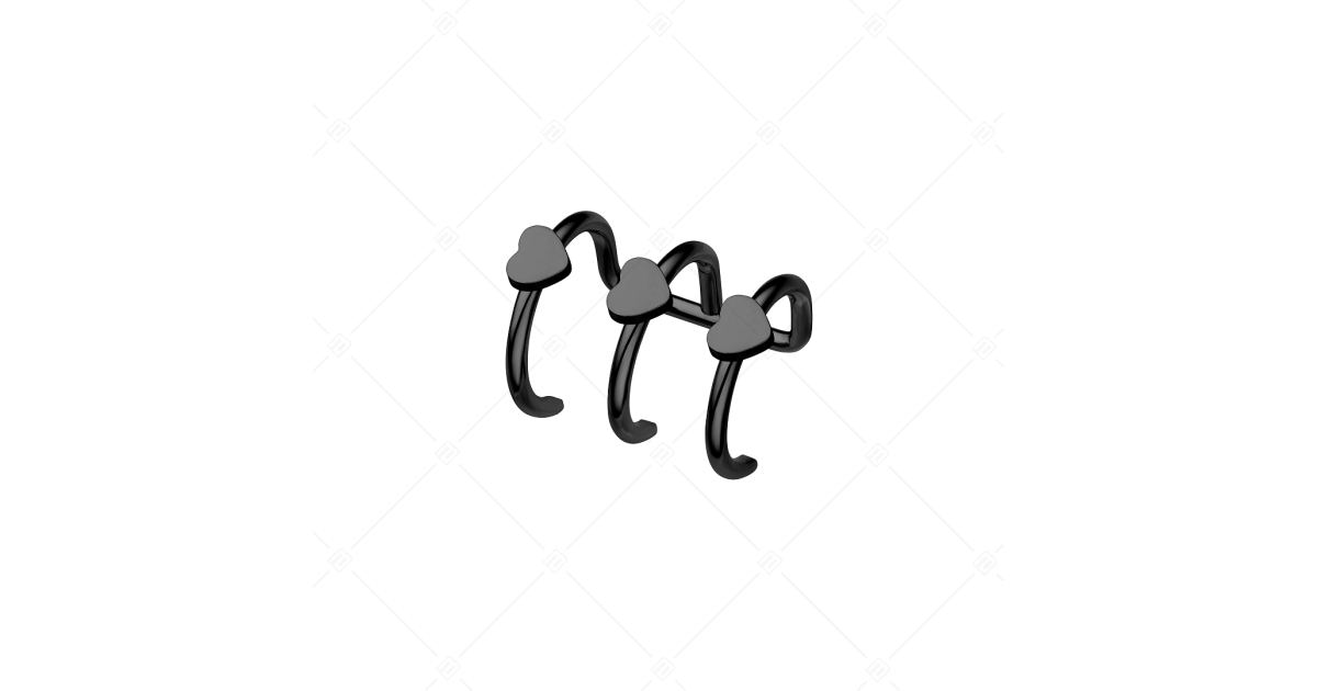 Ear cuff made of three-part cylindrical material with high polish and black PVD plated. With three hearts pattern. Fashionable and comfortable wear at the same time. The material is hypoallergenic 316L medical stainless steel. It can be a stylish addition to an existing pair of earrings, but you can also choose additional matching jewelry from the huge selection of the BALCANO webshop. No ear holes are required.