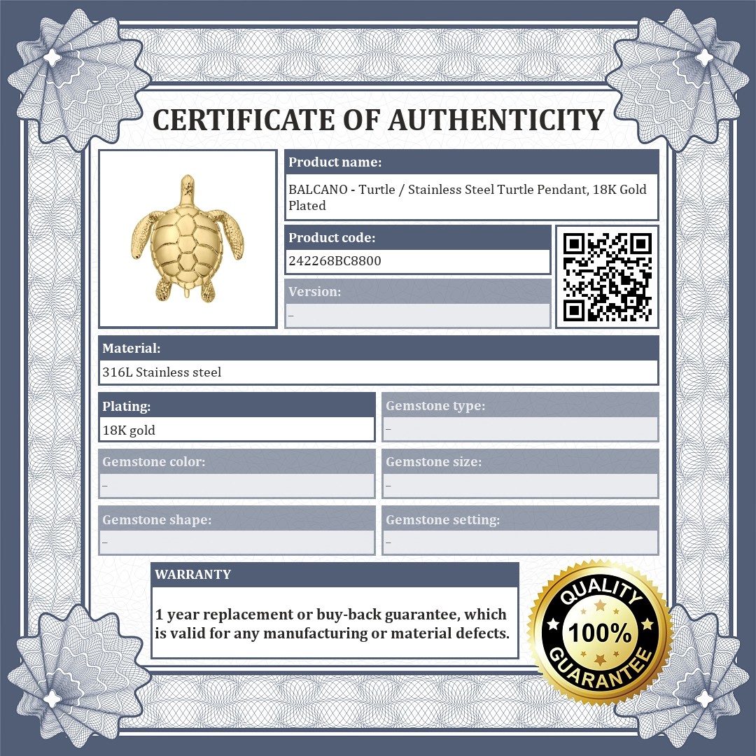 BALCANO - Turtle / Stainless Steel Turtle Pendant, 18K Gold Plated