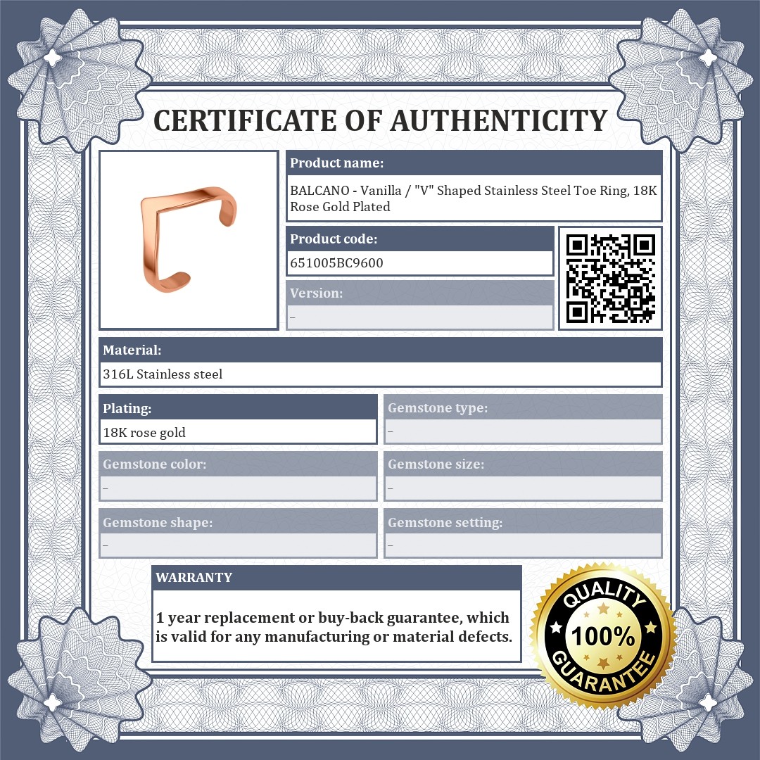 BALCANO - Vanilla / "V" Shaped Stainless Steel Toe Ring, 18K Rose Gold Plated