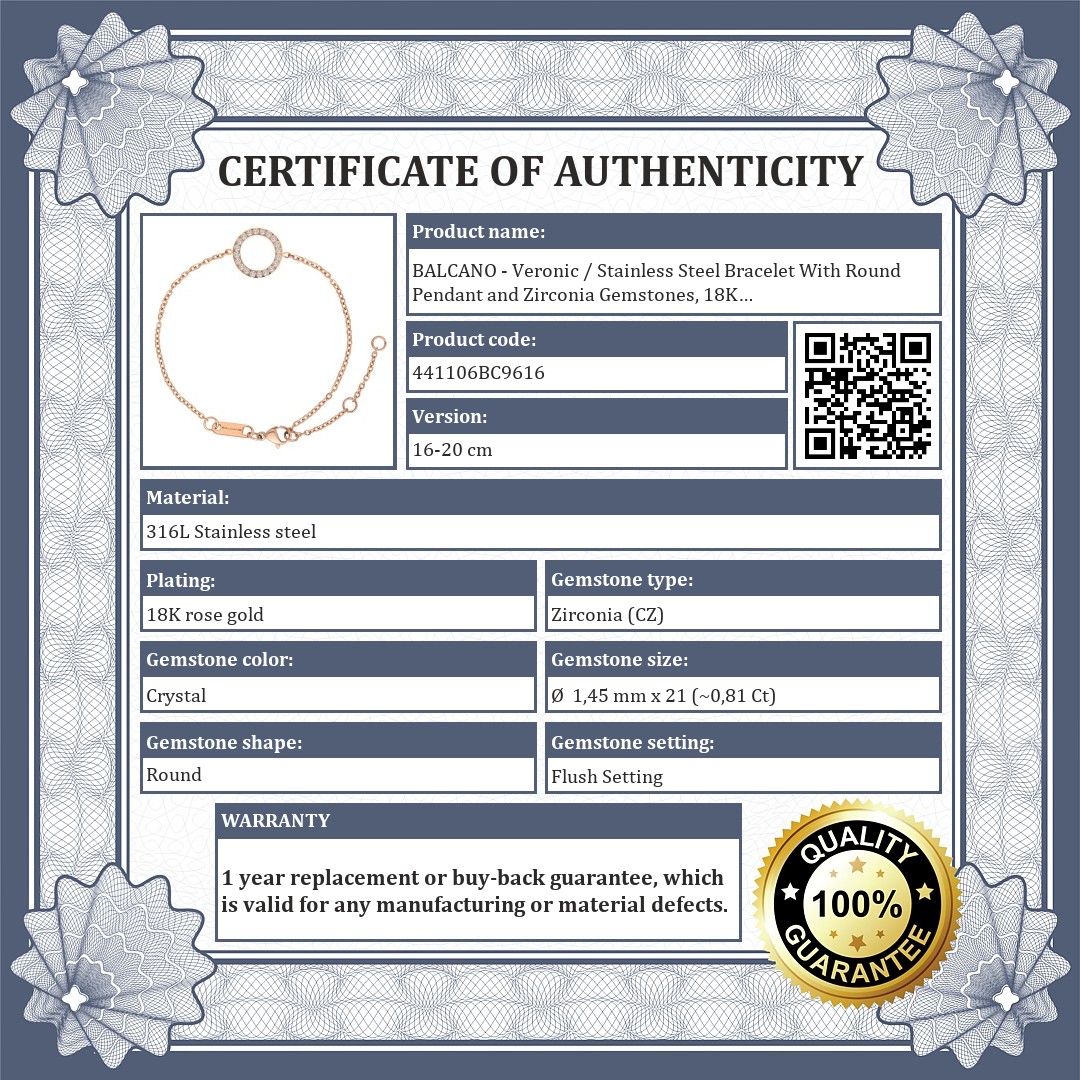 BALCANO - Veronic / Stainless Steel Bracelet With Round Pendant and Zirconia Gemstones, 18K Gold Plated