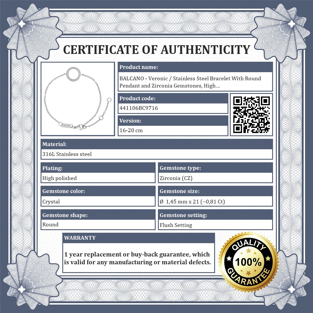 BALCANO - Veronic / Stainless Steel Bracelet With Round Pendant and Zirconia Gemstones, High Polished