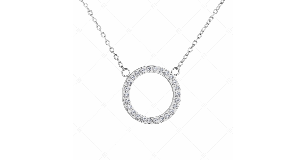 BALCANO - Veronic / Stainless Steel Necklace With Round Pendant and Zirconia Gemstones, High Polished
