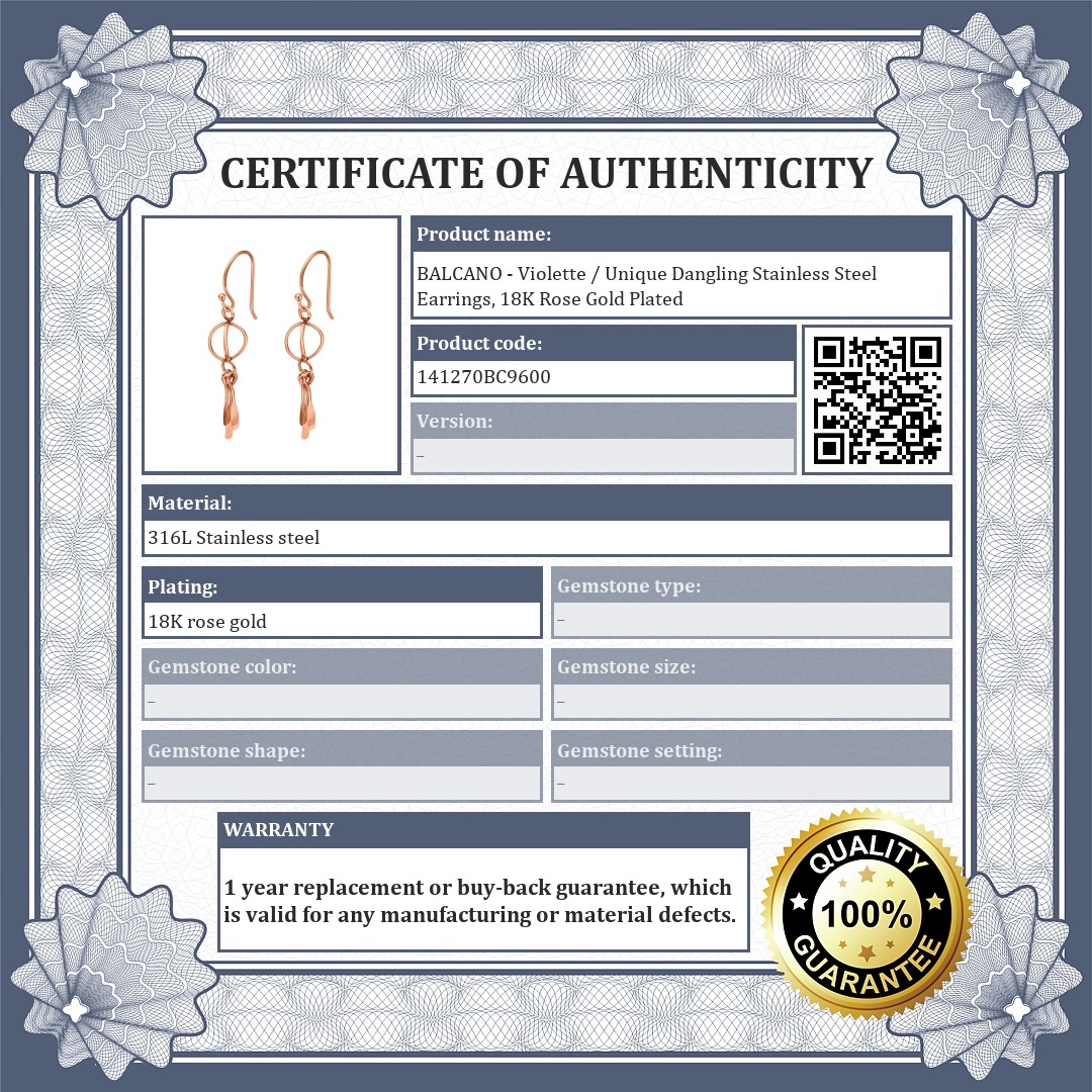 BALCANO - Violette / Unique Dangling Stainless Steel Earrings, 18K Rose Gold Plated