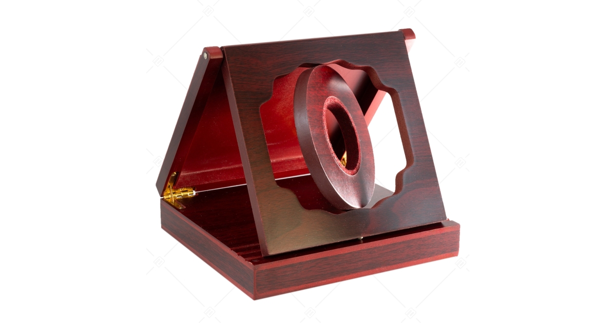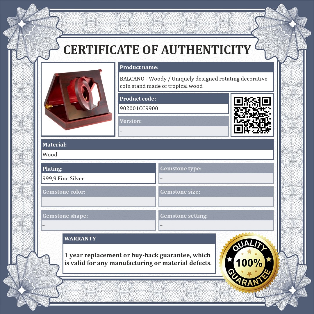 Collapsible and rotatable, high-quality decorative coin display stand made of tropical wood.