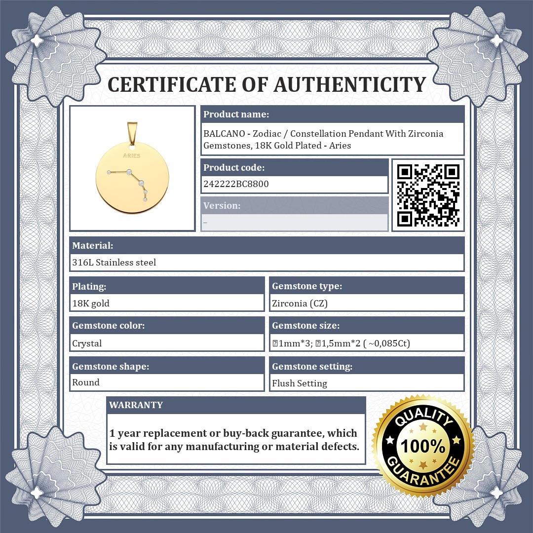 BALCANO - Zodiac / Constellation Pendant With Zirconia Gemstones, 18K Gold Plated - Aries
