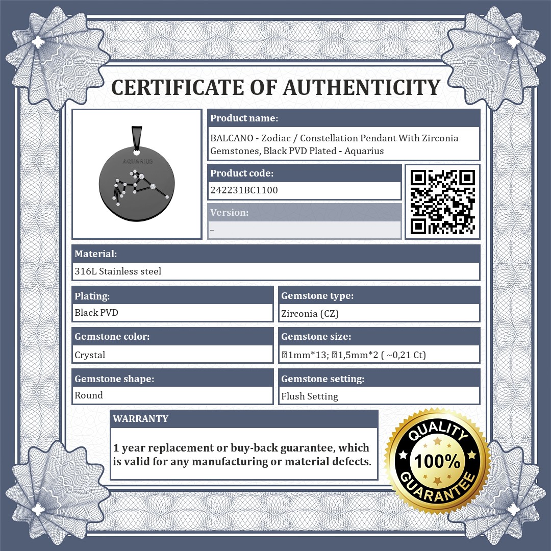 BALCANO - Zodiac / Constellation Pendant With Zirconia Gemstones, Black PVD Plated - Aquarius