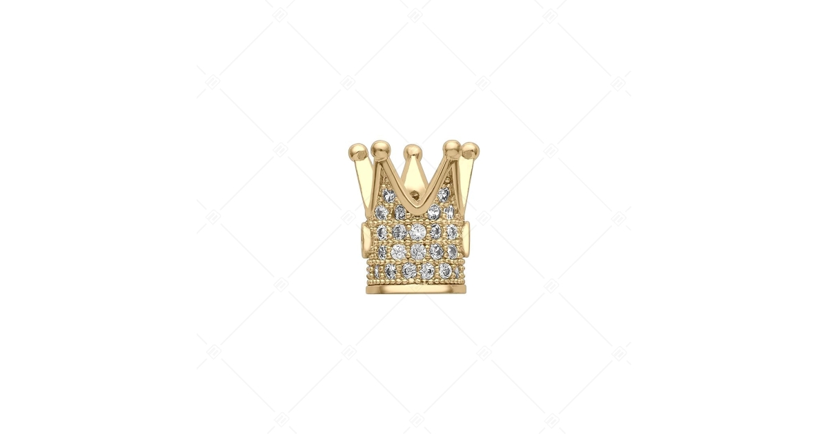Crown- shaped copper spacer charm. It is encrusted with white cubic zirconia crystals in a 18K gold plated. The spacers ensure that your charms and beads don't slip on the bracelet.