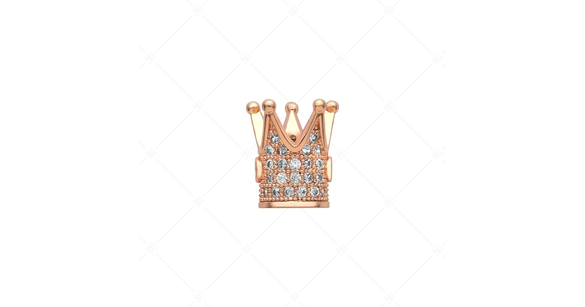 Crown- shaped copper spacer charm. It is encrusted with white cubic zirconia crystals in a 18K rose gold plated. The spacers ensure that your charms and beads don't slip on the bracelet.