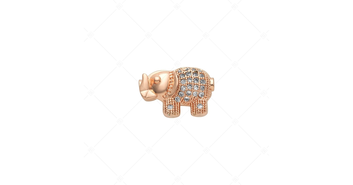 Fashionable, elephant shaped spacer charm. Made of copper with 18K rose gold plated. Sparkling cubic zirconia gemstones make it even more special. The spacers ensure that the charms and beads do not slip off your bracelet.