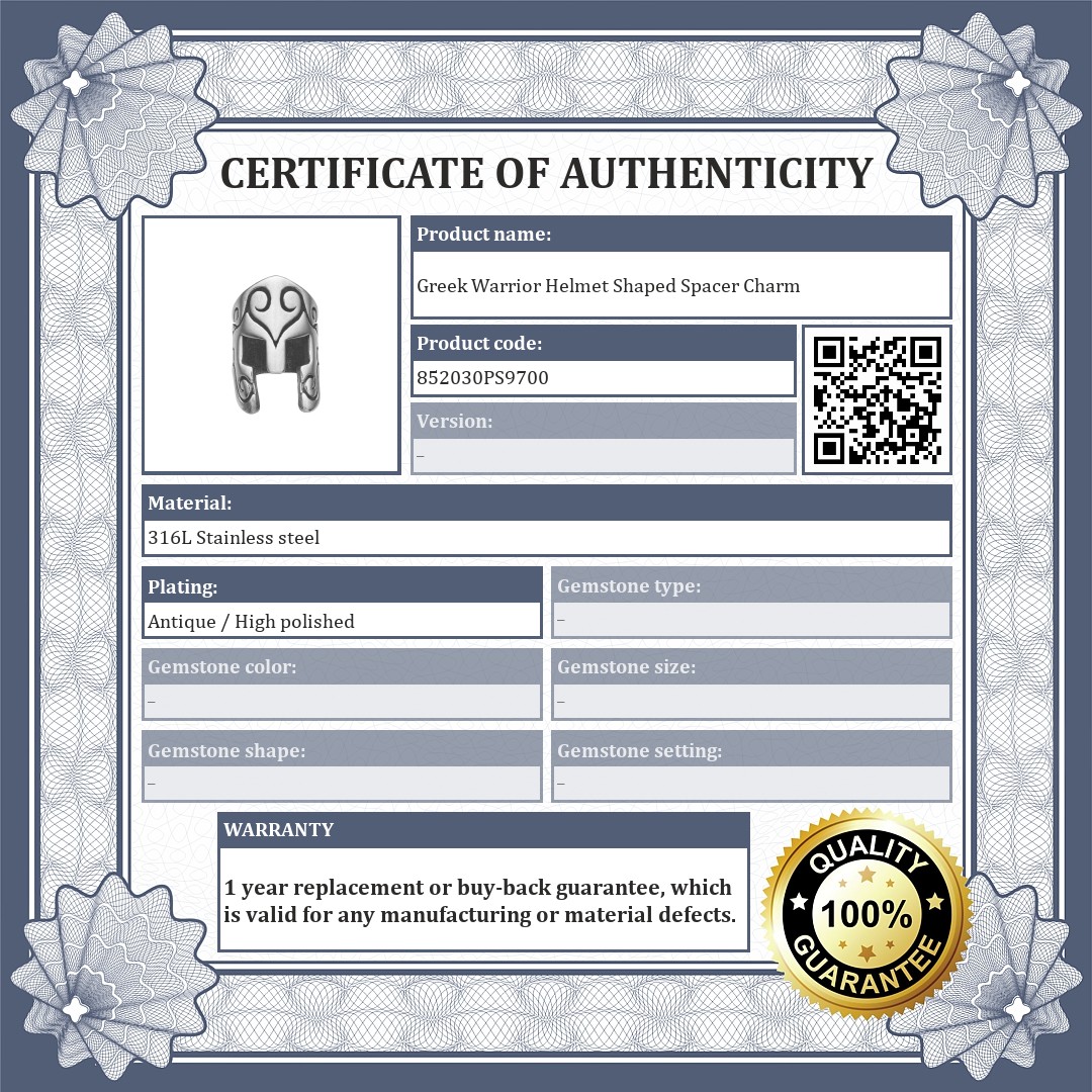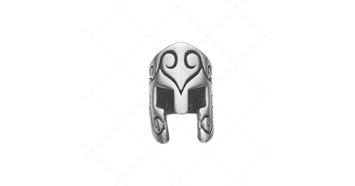 Greek warrior helmet shaped spacer charm. 316L medical grade stainless steel accessory with special antiqued finish. The spacers ensure that the charms and beads do not slip off your bracelet.