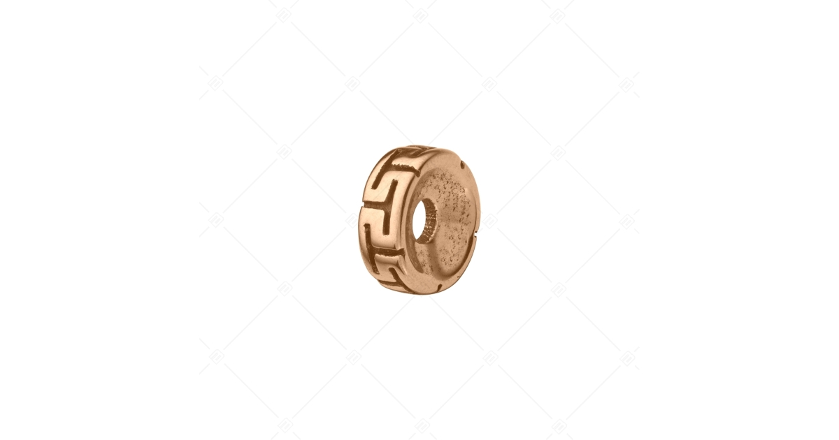 Round, engraved Greek pattern spacer charm. Made of 316L medical grade stainless steel, plated with 18K rose gold. The spacers ensure that the charms and beads do not slip off your bracelet. Choose the BALCANO charms that suit your taste and create your unique bracelet.