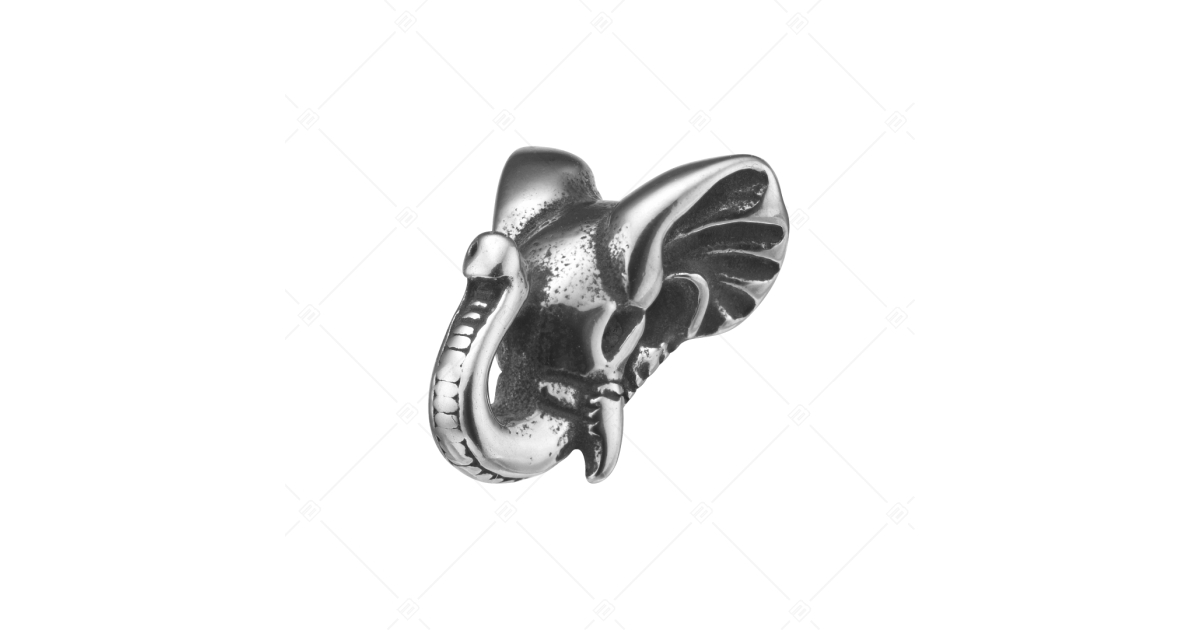 Elephant- shaped spacer charm. Made of 316L medical grade stainless steel, the surface of the accessory has a special antiqued effect. High quality, will not wear or tarnish with use. Spacers ensure that charms and beads do not slip off your bracelet.
