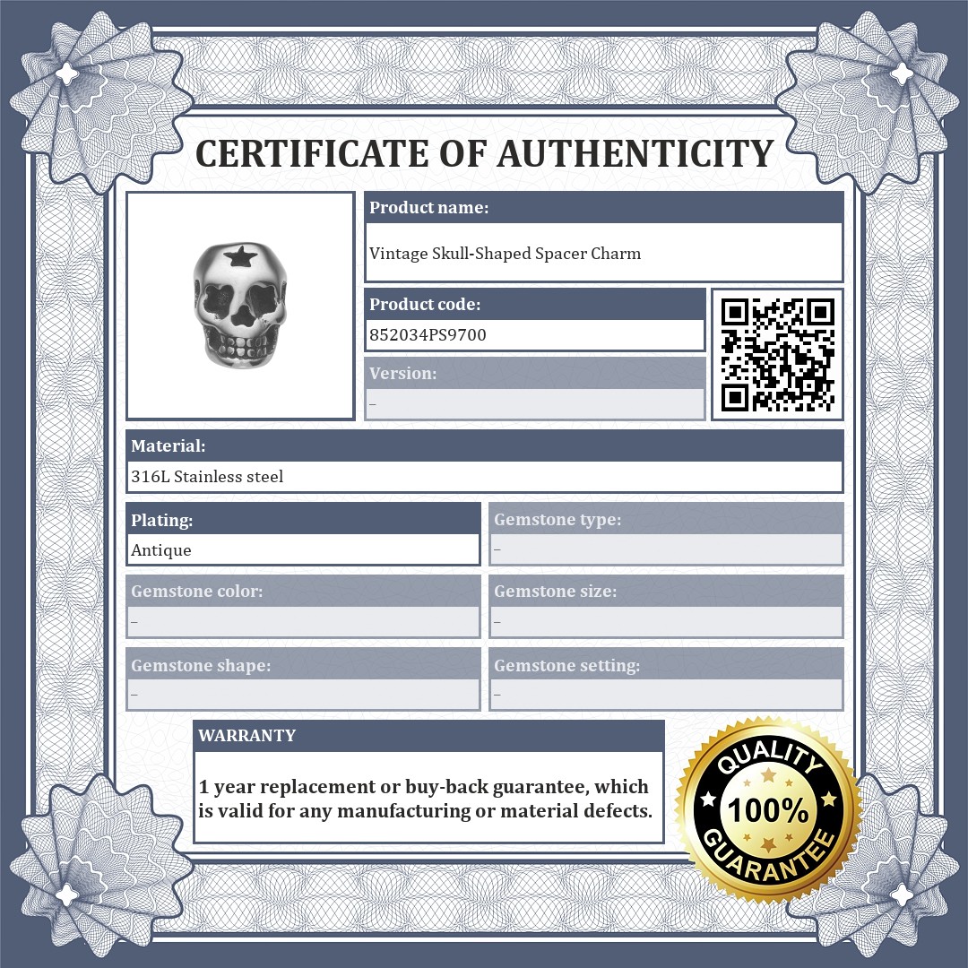 Skull-shaped spacer charm with star on top. Made of 316L medical stainless steel, the accessory has a special antiqued effect. The spacers ensure that the charms and beads do not slip on your bracelet.
