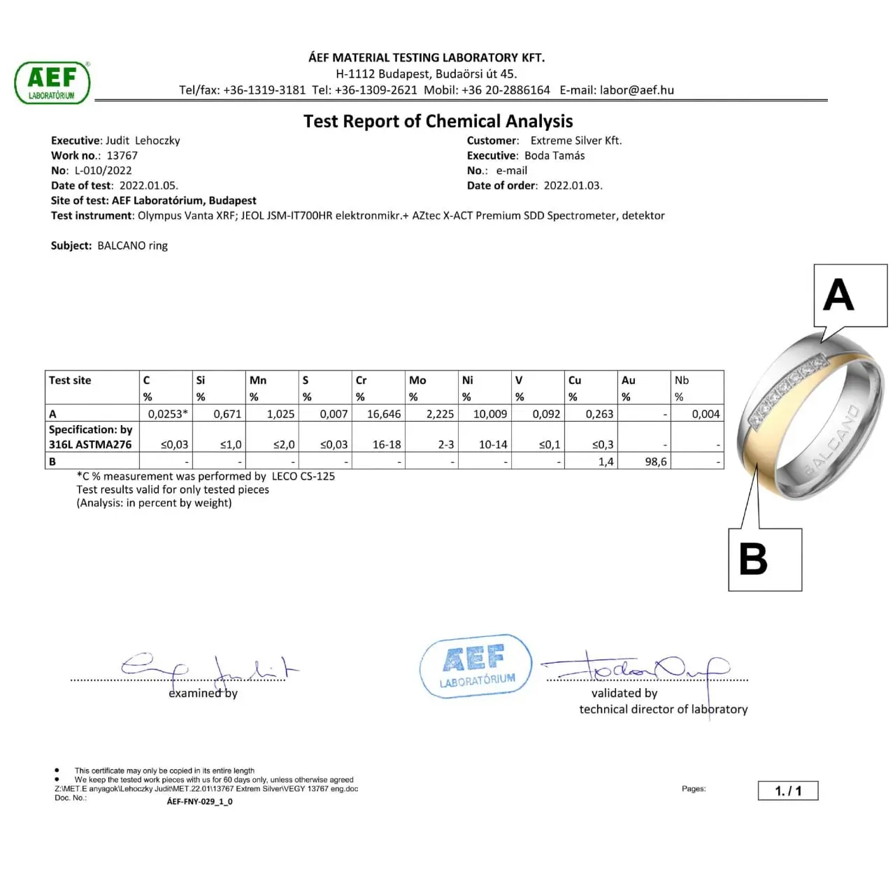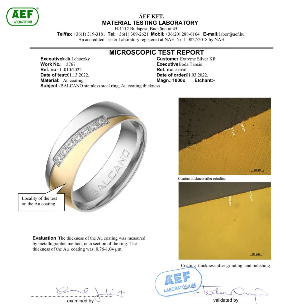 At the bottom, you’ll also find a lab test report from one of our brand jewelry pieces, showing verified 316L medical-grade stainless steel (hypoallergenic, corrosion-resistant) and a nearly 1-micron thick, wear-resistant 18K gold plating.